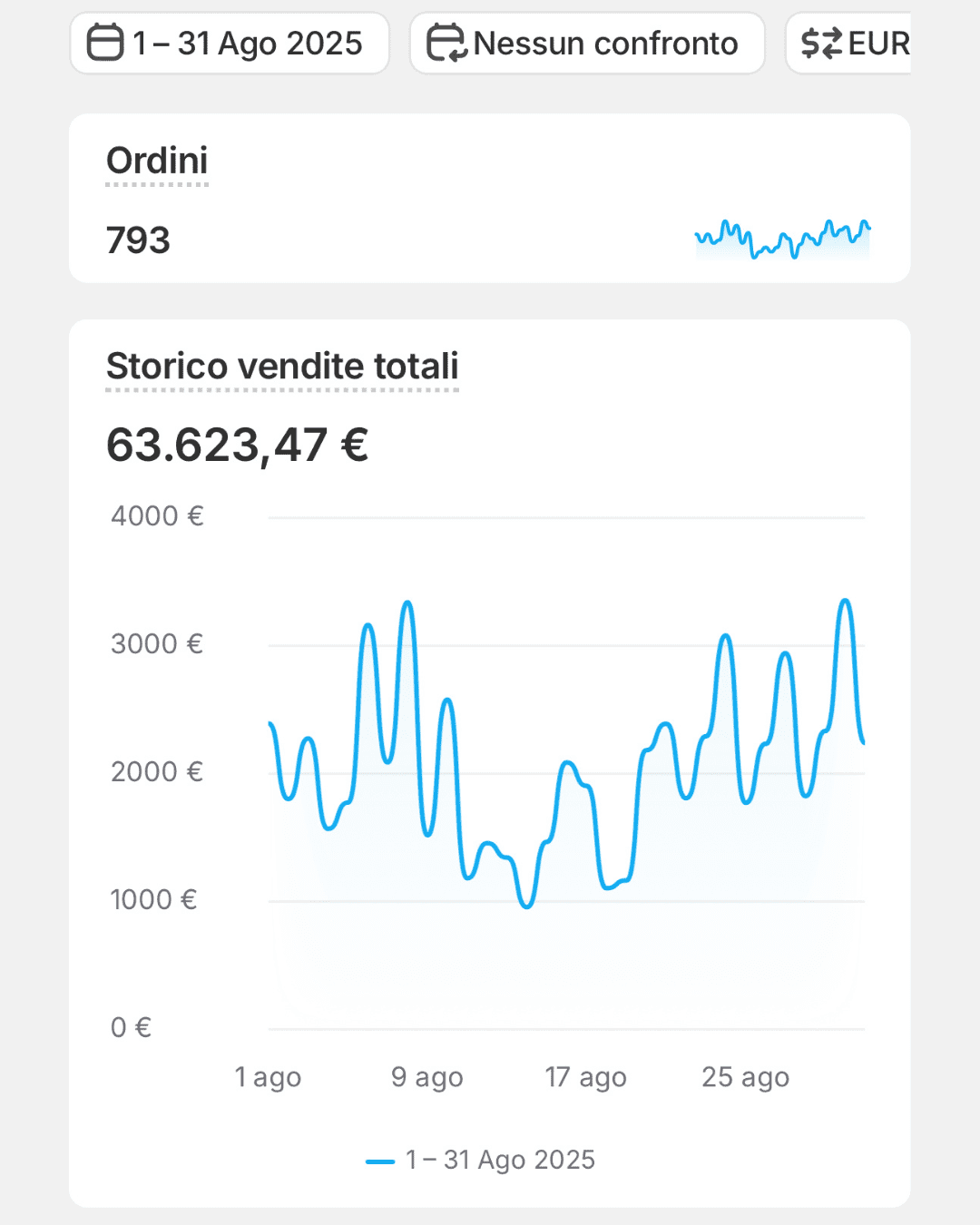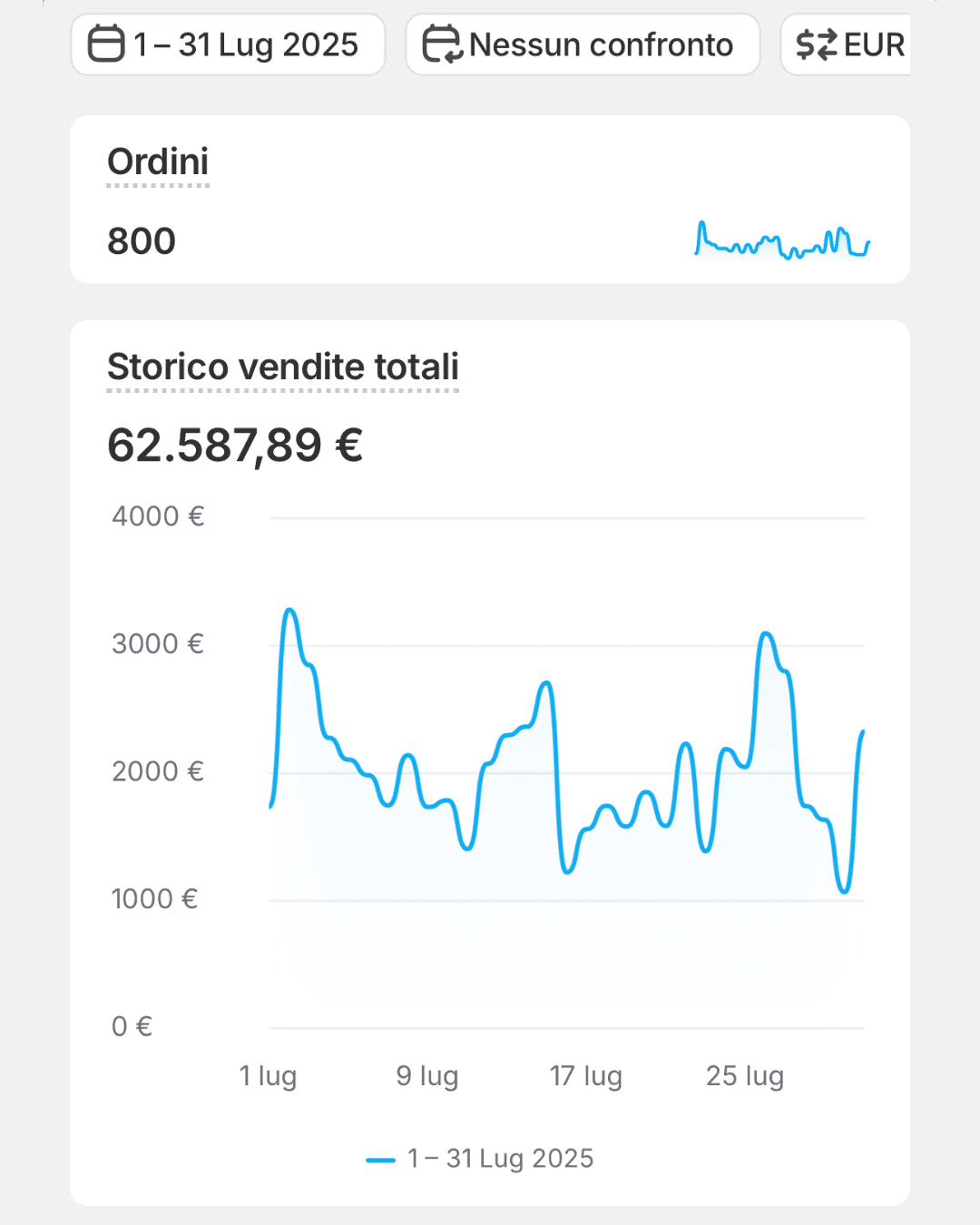 Durante una chiacchierata gli parlai delle potenzialità inespresse del suo e-commerce e gli dissi chiaramente che vedevo la possibilità di raggiungere obiettivi importanti: 1.000 o 2.000 € al giorno di vendite costanti.